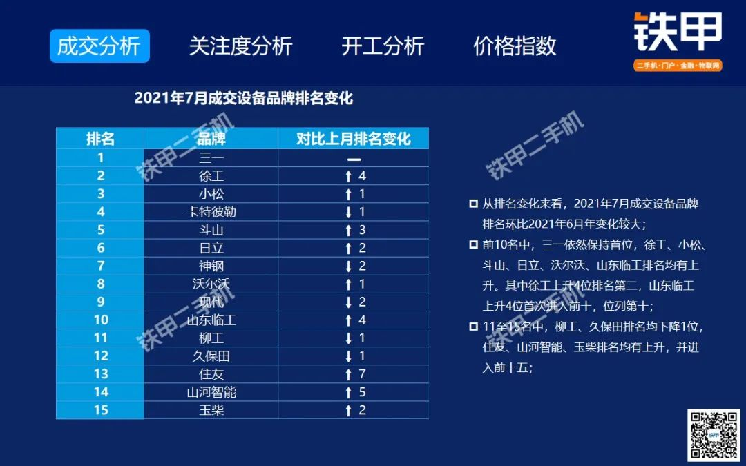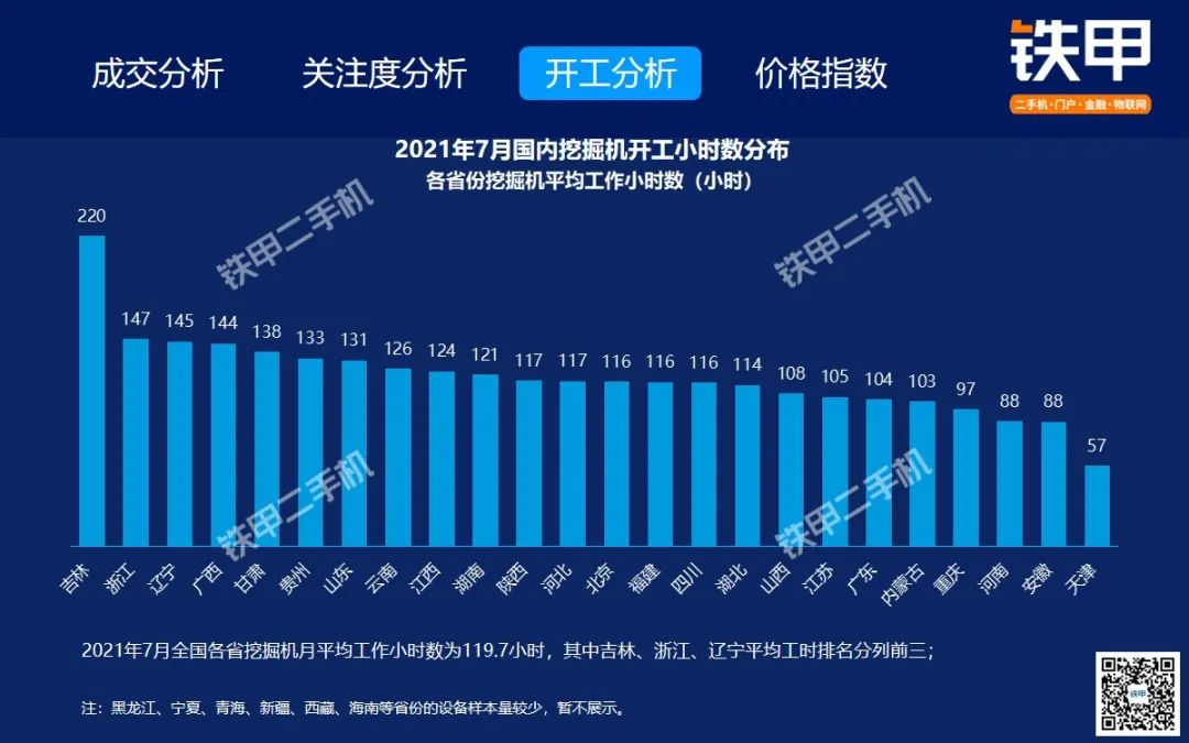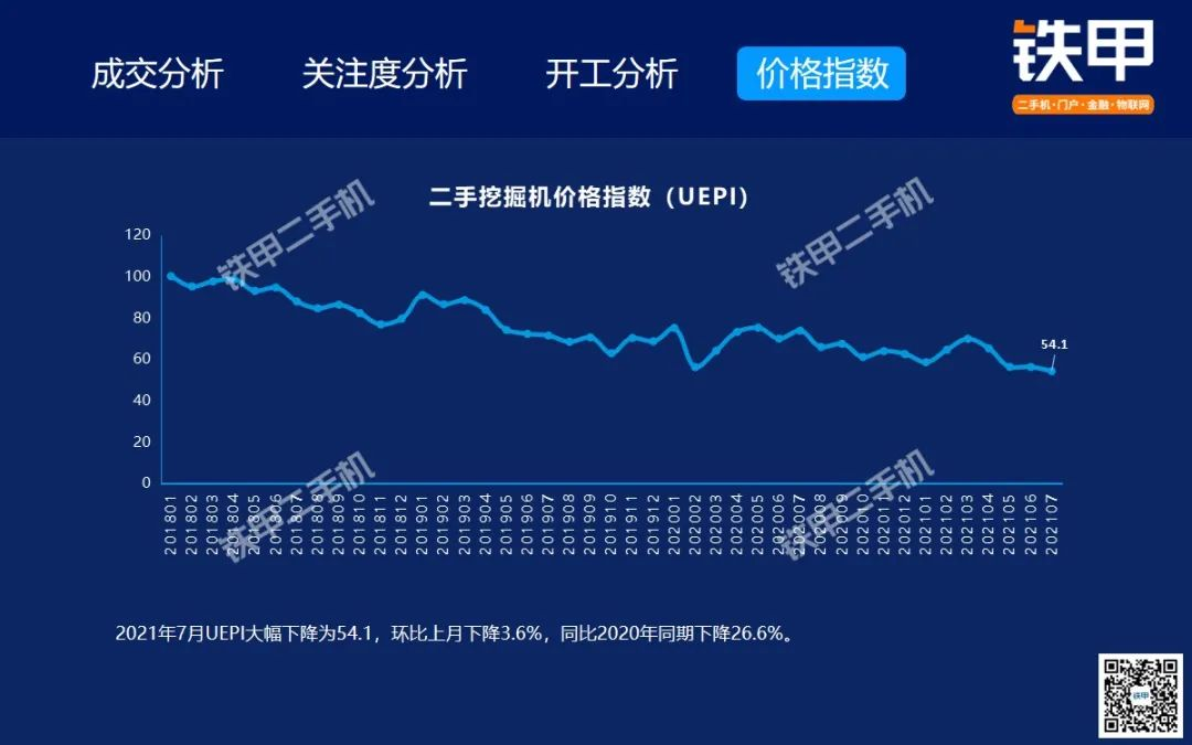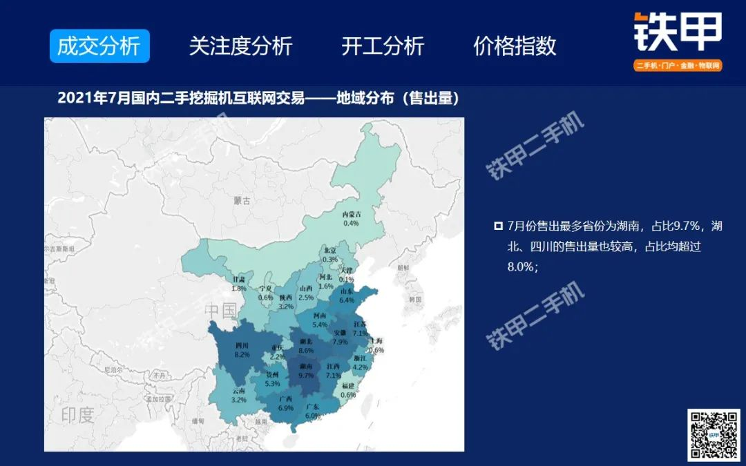 2021年7月全国挖机平均开工率88%,铁甲二手挖掘机互联网交易报告新鲜出炉!
