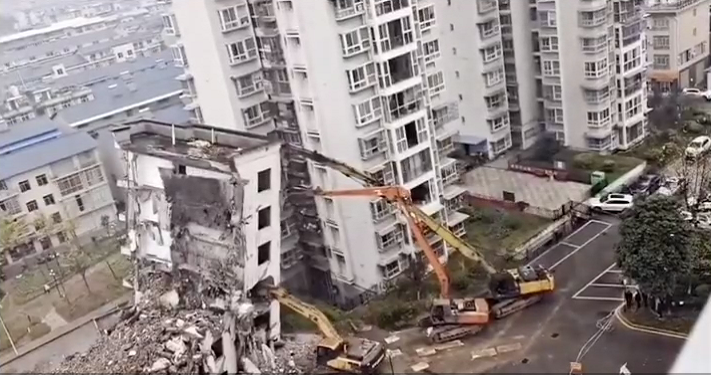 楼房垮塌,最终还是挖机抗下了所有......